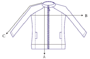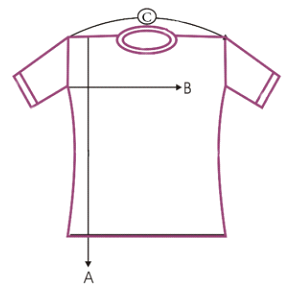 A= الطول B= محيط الصدر C= الكتف